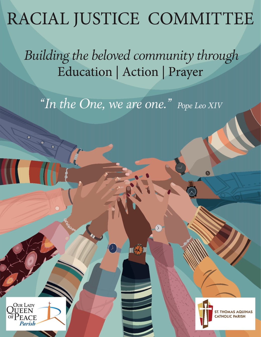 Mission: The Racial Justice Committee (RJC) is committed to following the tenets of Catholic Social Teaching to foster anti-racism through education, action, and prayer for ourselves, our church, and our community.